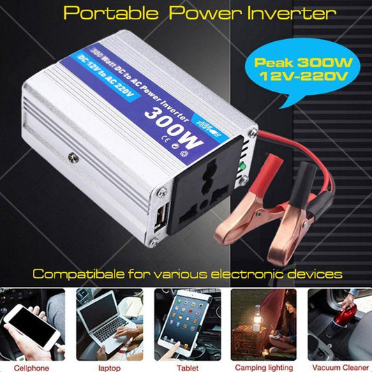 محول طاقة للسيارة 12 فولت الى 220 عالي التردد بقوة 300 واط متعددة المنافذ