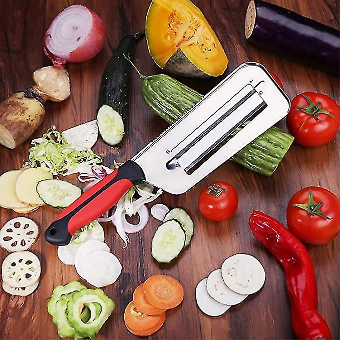 اكتشف أداة تقطيع ومقشرة الخضار المحمولة، سهلة الاستخدام. تتميز بشفرتين حادتين لتقشير وتقطيع الخضار والفواكه والأجبان والعديد من المنتجات الغذائية كما يمكنها تنظيف الأسماك بكل سهولة.