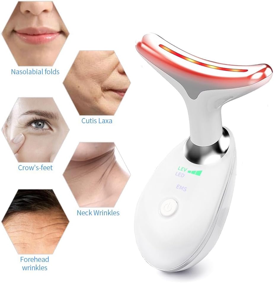 يحتوي جهاز تدليك الوجه والرقبة متعدد الوظائف هذا على 7 أوضاع إضاءة LED مختلفة ليست مناسبة فقط لتدليك الوجه والرقبة ولكن أيضًا يمكن استخدامها لتدليك الذراعين والكتفين والأجزاء الأخرى، وشد الجلد المترهل. واسترخاء العضلات.