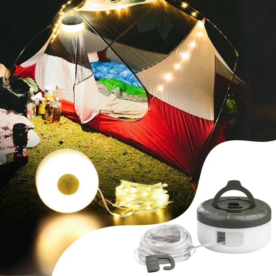 استكشف الأماكن الخارجية باستخدام حبل الإضاءة الدافئ القابل للسحب بطول 8 أمتار، مزيج مثالي من فانوس التخييم وحبل إضاءة.