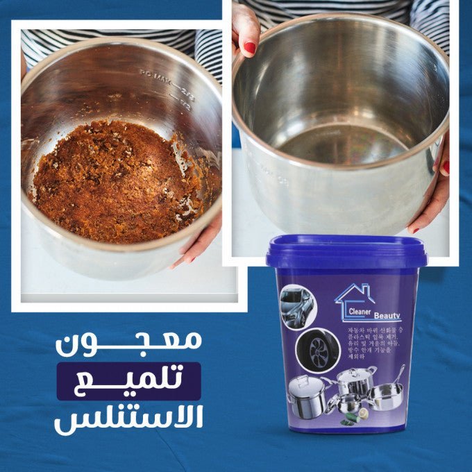 - ✅ يمكنه تنظيف جميع أنواع الأسطح المصنوعة من الفولاذ المقاوم للصدأ مثل(الثلاجات، غسالات الأطباق،شوايات الفرن).