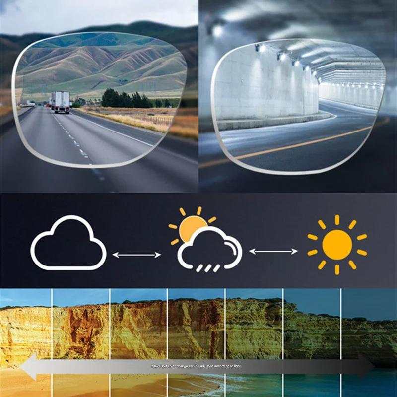 الراحة والتكيف: عدسات تتكيف تلقائيًا مع مستويات الإضاءة المختلفة، مما يوفر رؤية مريحة ومستقرة.